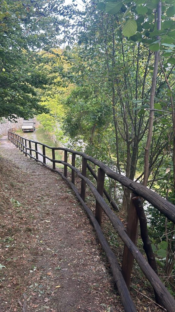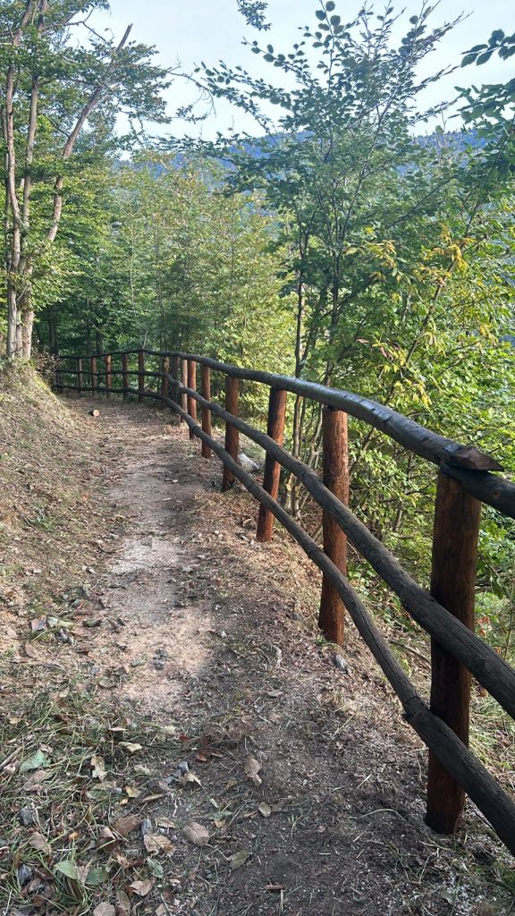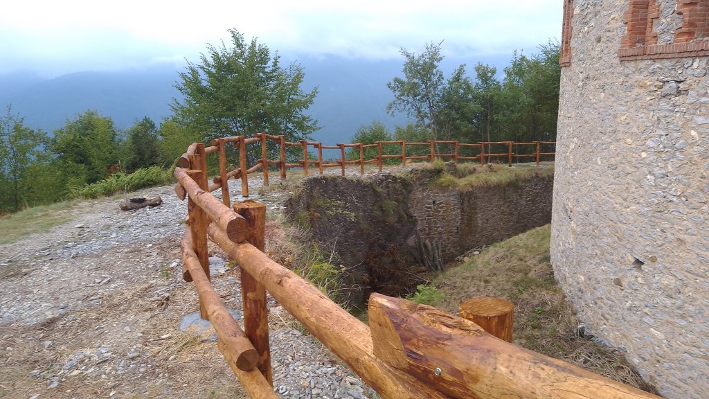 L’intervento di € 80.000 ha previsto l’installazione di staccionate di legno per la protezione a valle, ripristino del sistema di scolo laterale, realizzazione di 2 piazzuole antistanti al Forti Pozzanghi e Montescio quali punti turistico-culturali con bellissima vedute, taglio arbusti confinanti con il tracciato e sfalcio erba.